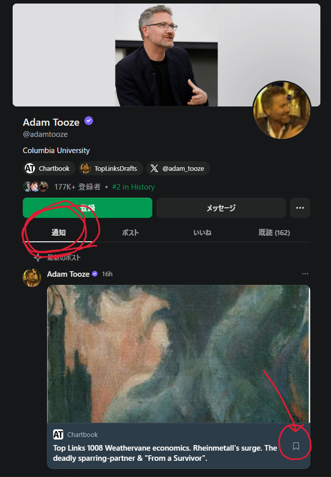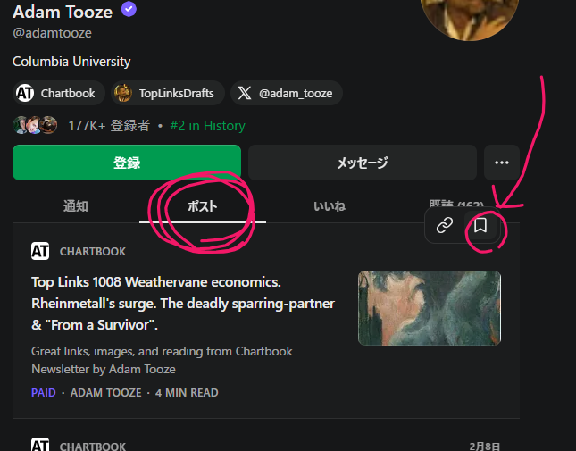 基本、この時点では「積読」状態になってしまうのですが、これでとりあえずこの投稿主を辿ることができる状態にして満足しています(フォローもサブスクもせずに)